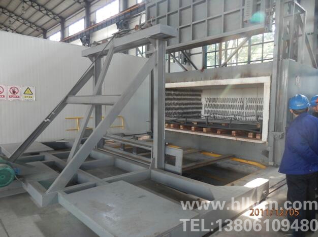 結構:本爐由一個爐體和一個可以移動的叉車及料框組成。爐體外殼及臺車均采用優質鋼板和型鋼焊接而成。爐襯采用純纖維棉,爐底承重部分采用重質耐火磚砌筑,以增強爐襯的結構強度,提高爐體的保溫性能。